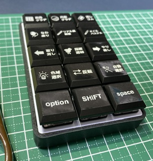 画像はイラスト制作用左手デバイスです。無刻印キートップを使用したので、ピータッチキューブ作成ラベルを貼り付けてわかりやすくしています。デフォルトでアイコンが大量に用意されており、そちらと組み合わせてすぐボタン用シールを作成することができました。360dpiまで印刷可能なので、自作ロゴやイラストを単色で印刷することもできます。この辺の使い方は思いつき次第なんだろうな〜。