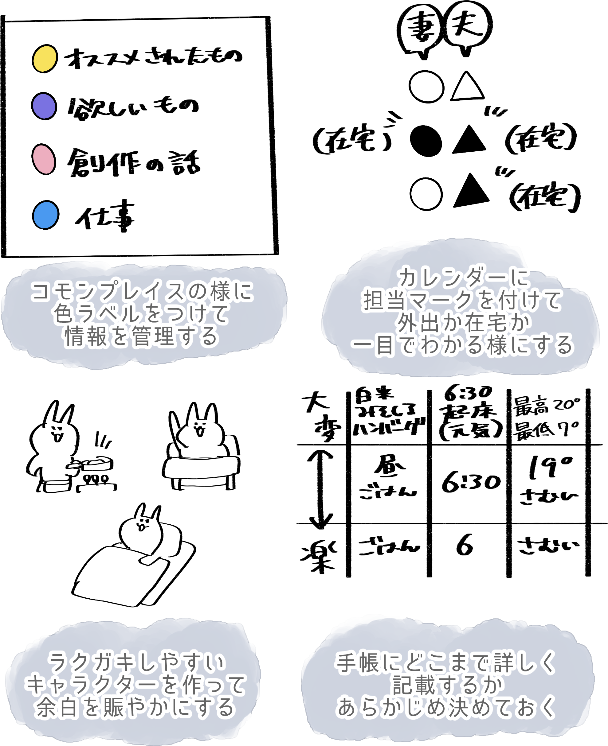 会話の中で出てきたそれぞれの手帳時間の工夫をピックアップしました。