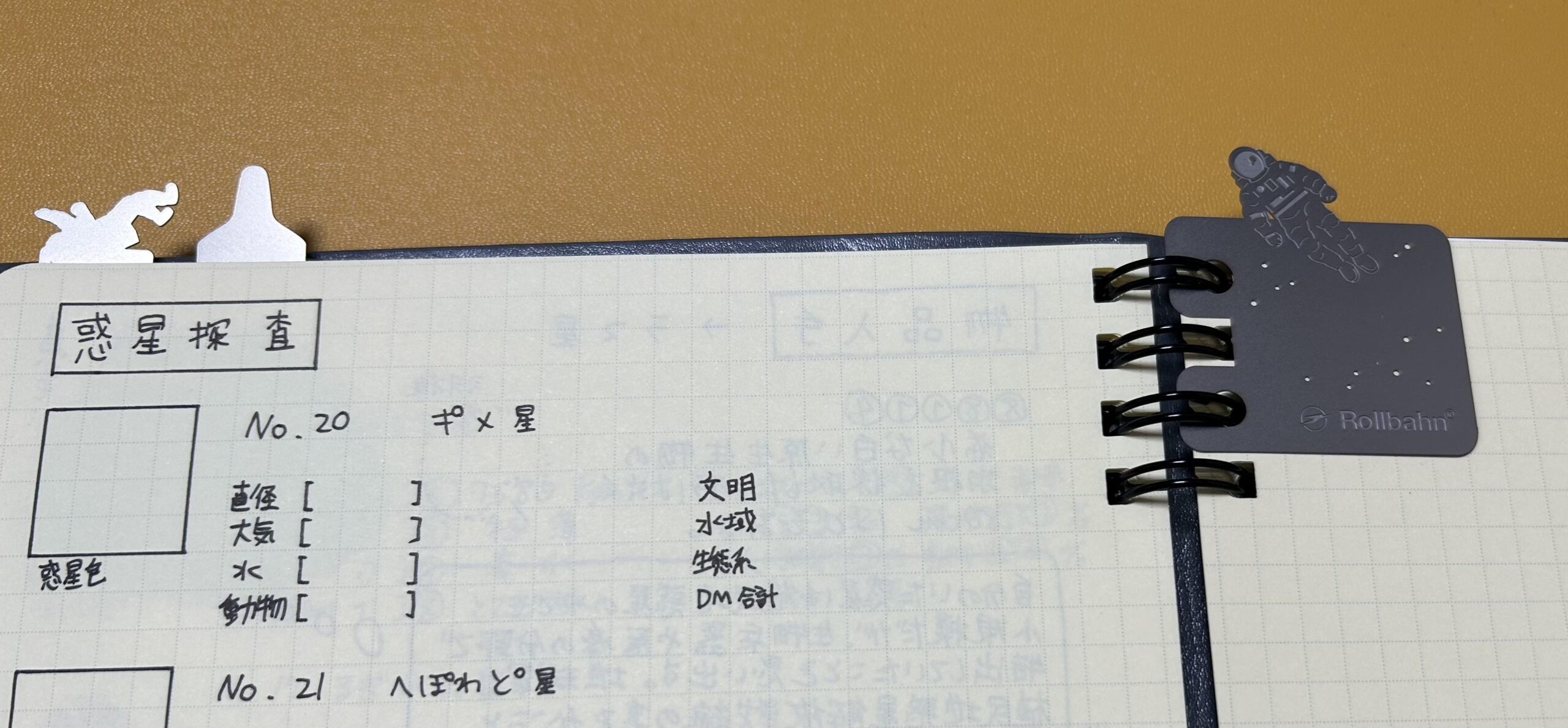 宇宙のさすらい人用のソロジャーナル手帳に挟みました。かわいい。