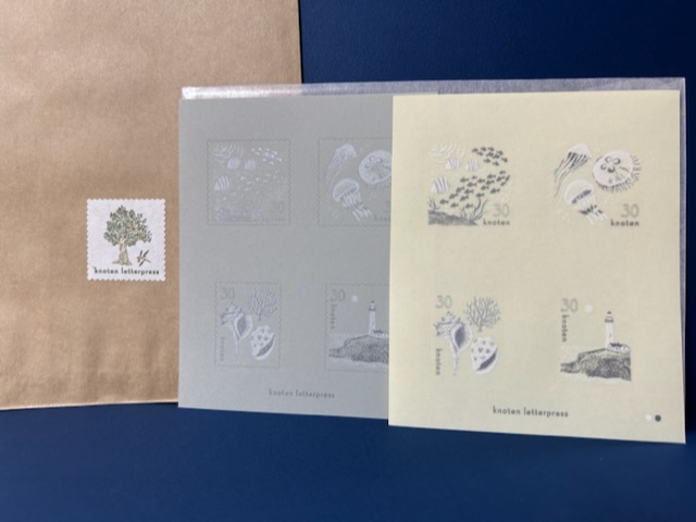 切手風シールを頂きました。「knoten」はドイツ語で「むすびめ」を意味していて、手に取った人たちの縁を結ぶような一枚になってくれたらと名付けたらしい。良い名前だな〜。紙博でよくお見かけする会社さん。