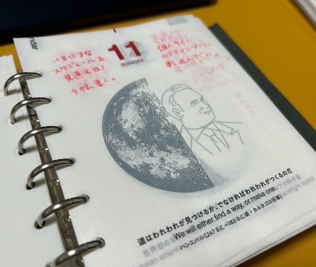 今年から宙(そら)の日めくりカレンダーで作った一言日記帳を始めました。1月のインクはカキモリさんの01 ぽっインクです。赤が年の初めで気分が上がる。