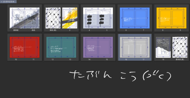 20周年記念本とキャラクターデザイン本を作り始めました。 台割とクリップファイルの器作成しかまだしてない。具体的な進行予定を詰めてないので、2月中には進行スケジュールを固めたい。グラフィックさんとワンブックスさんにそれぞれお願いしようと思ってますが、どれだけ刷るかも決めてない。私へ 方針を固めて〜