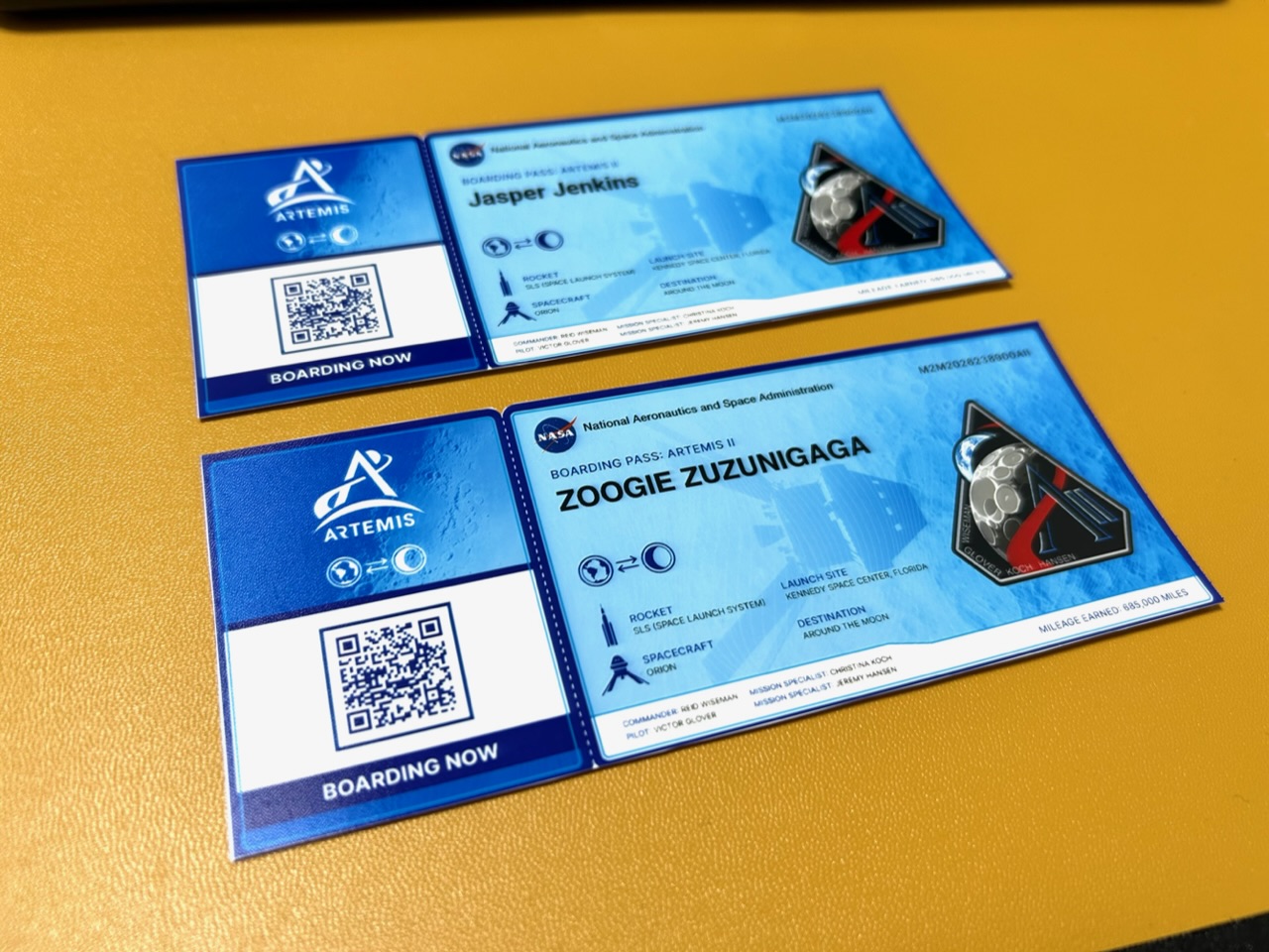 弊キャラクターから、ズズニガガさんにキャンペーン応募してもらいました!!やった〜!月搭乗チケット!!家族のジャスパー・ジェンキンスも一緒!!これが見たかったんだよ…。全てにありがとう…ロマンに感謝。月の周回軌道に打ち上げられるSDカードに名前も一緒に載せてもらえるそうです。 50年ぶりの有人宇宙飛行計画ですよ…!もちろんアポロ計画当時私は生まれてない!早ければ2月6日からミッション開始らしいです。別の記事で自分用のまとめ作りたいな。